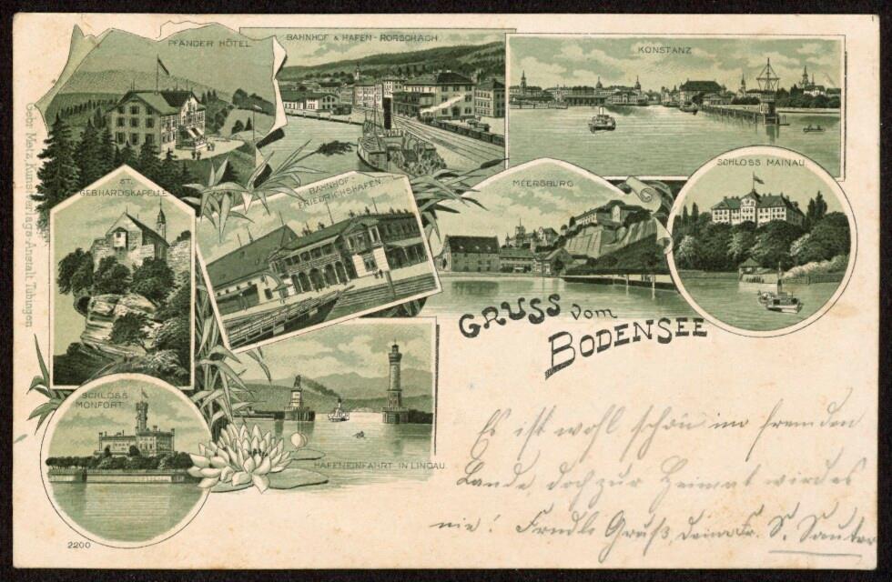 Gruss vom Bodensee : Konstanz : Meersburg : Hafeneinfahrt in Lindau ... : [Postkarte An ... in ...]