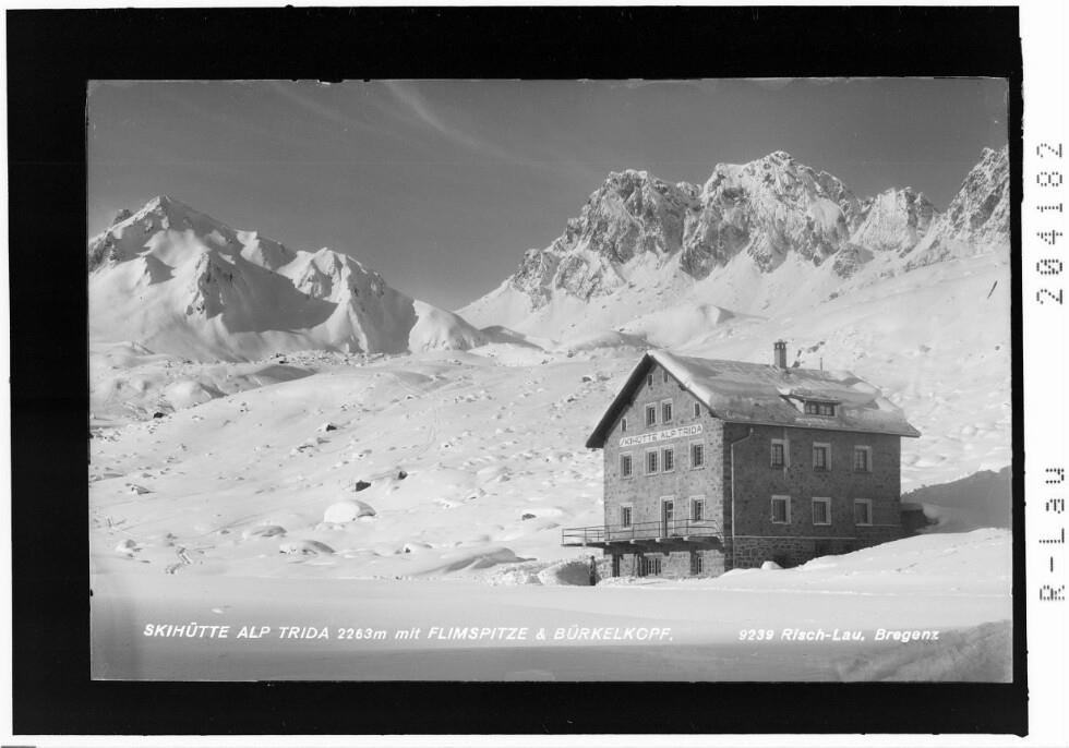 Skihütte Alp Trida 2263 m mit Flimspitze und Bürkelkopf