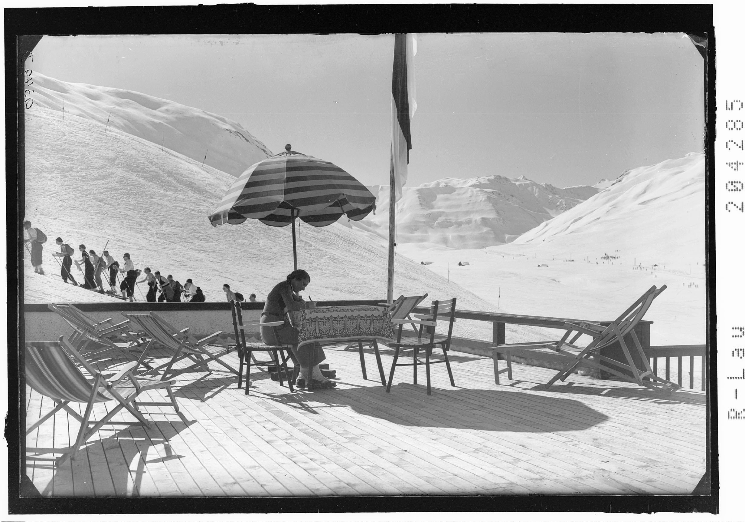 [Zürs / Hotel Flexen - Terrasse gegen Albonagrat]