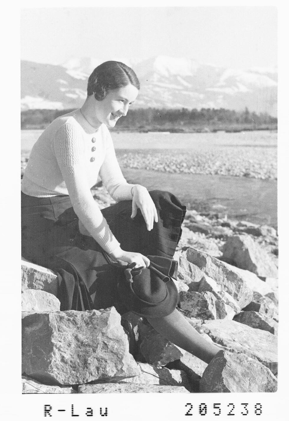 [Frau an der Bregenzerach mit Blick zum First]