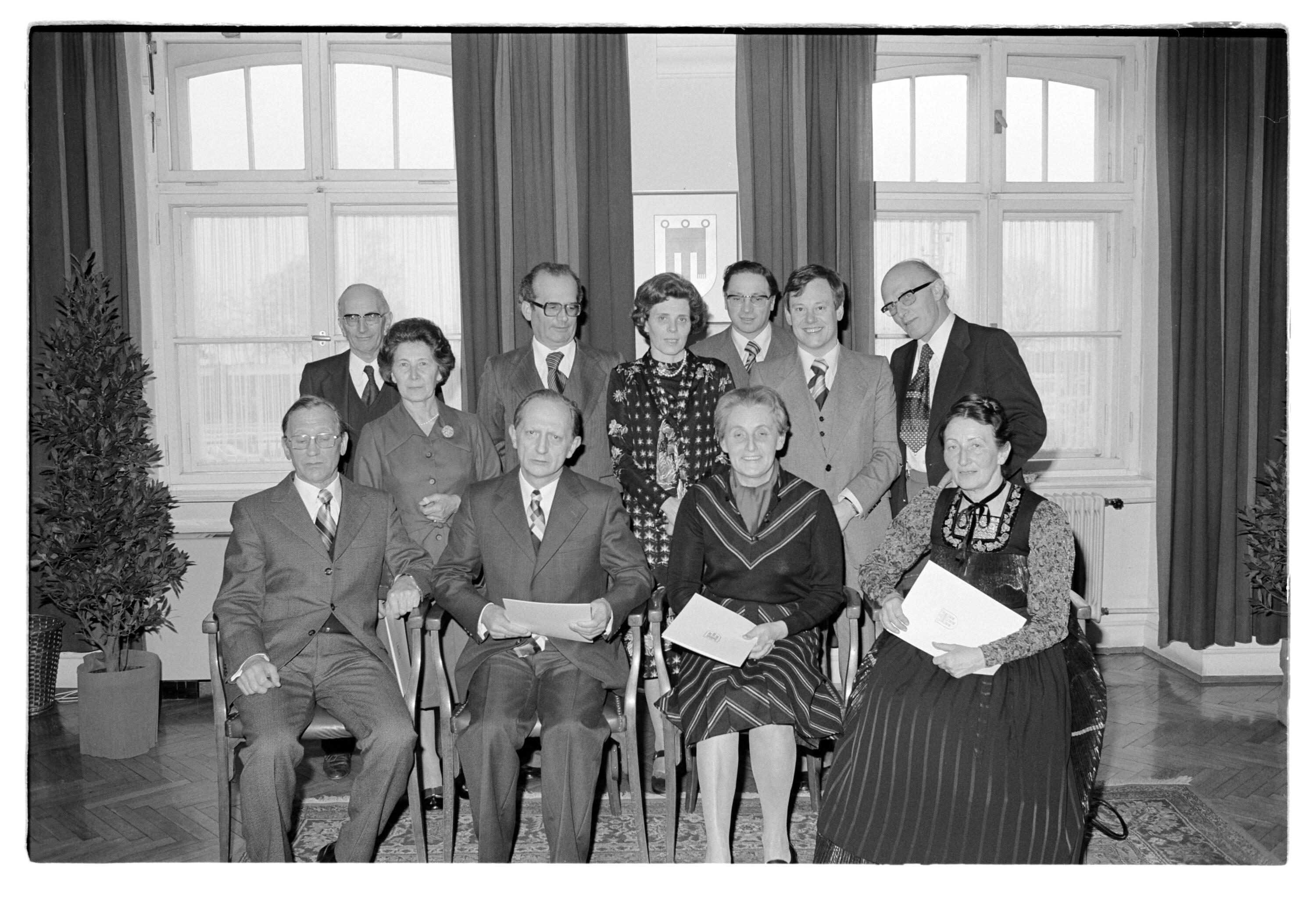 • o:87336: 1. Reihe v.l.n.r.: unbekannt, unbekannt, Hilde Hackspiel, Klara Schwendinger; hintere Reihe v.l.n.r.: Elmar Lutz, unbekannt, Herbert Keßler, unbekannt, Erich Steger, Siegfried Gasser, Adolf Helbock