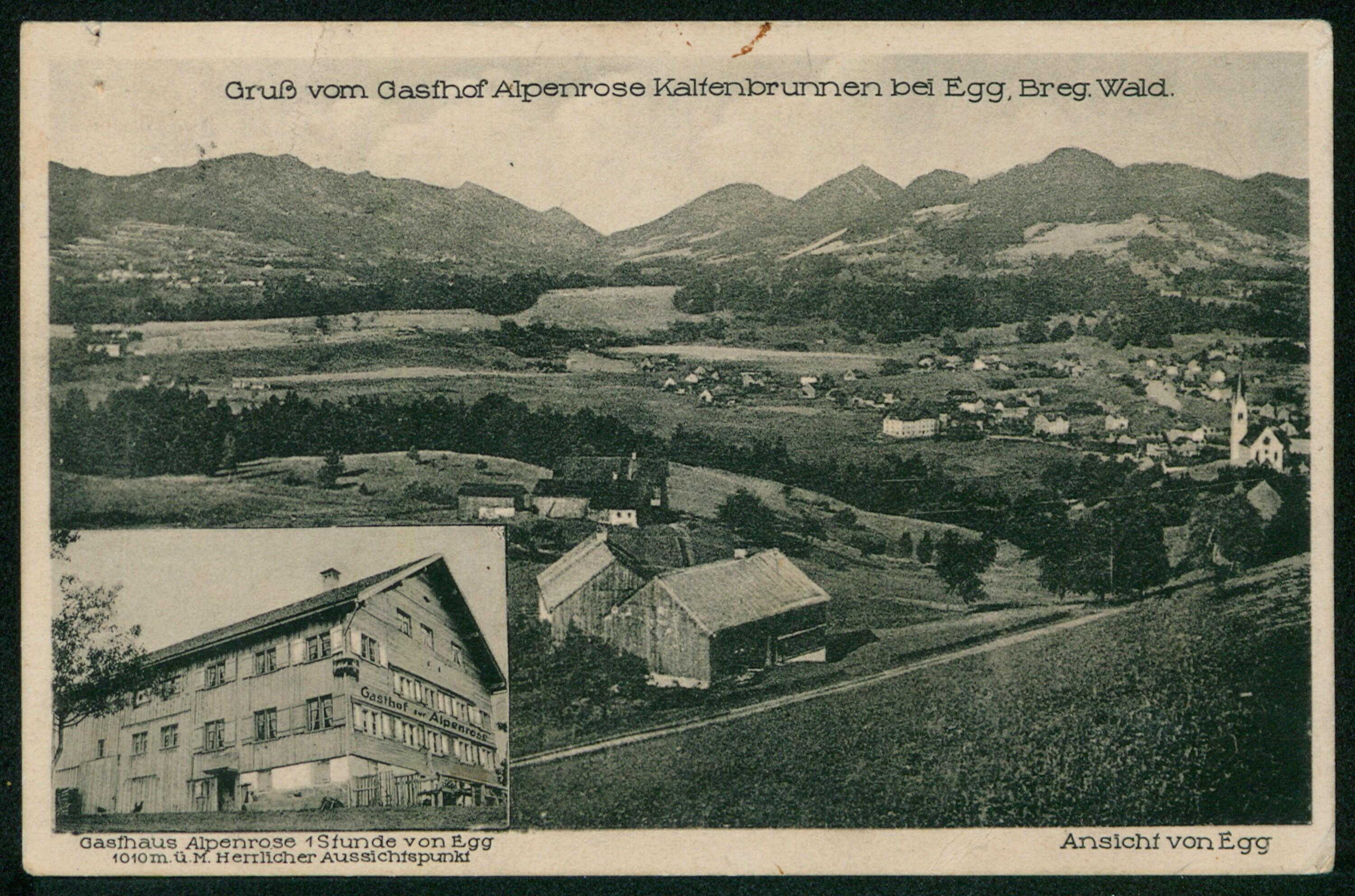 Gruß vom Gasthof Alpenrose Kaltenbrunnen bei Egg, Breg. Wald