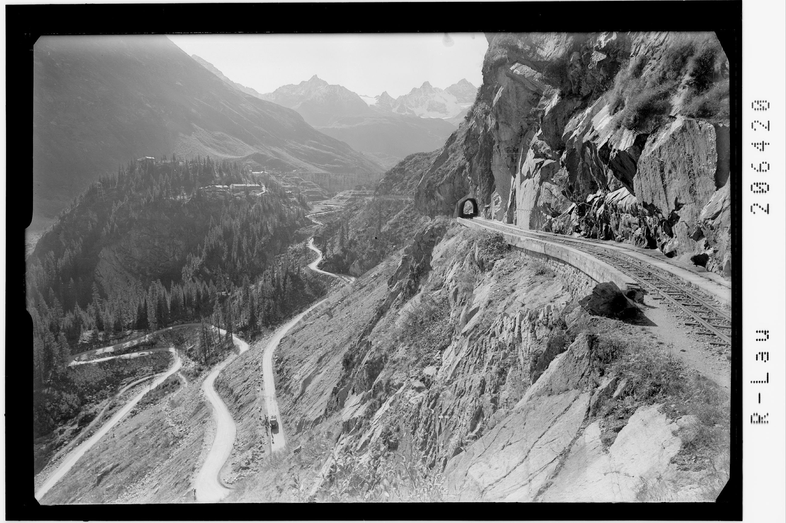 [Silvretta Hochalpenstrasse und Höhenbahn gegen die Litznergruppe]
